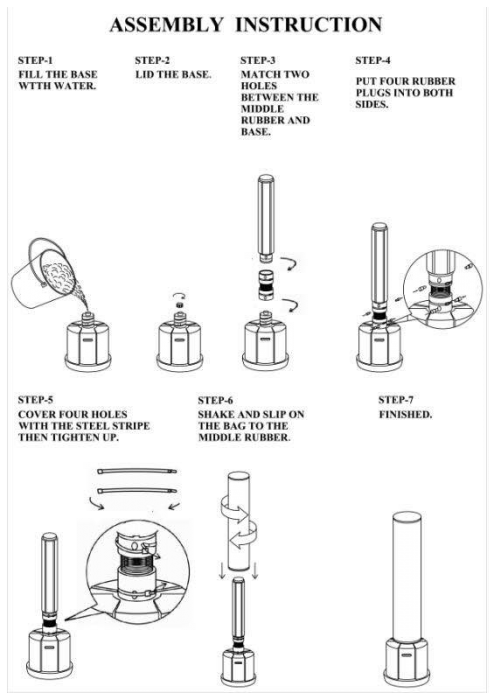 משקל: (מילוי מלא במים - עד 85 ק"ג / 187 פאונד) או עם חול (130 ק"ג / 286 פאונד)