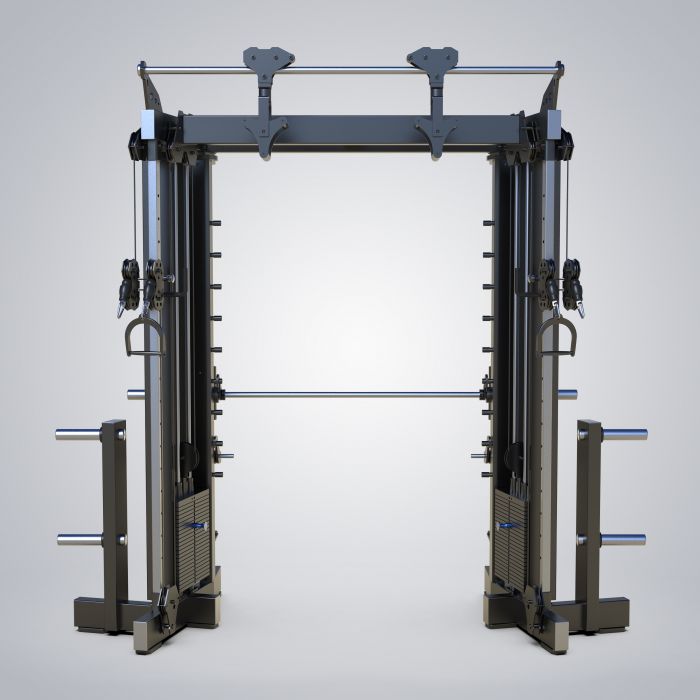 סמית משין משולב קרוס אובר מקצועי מיועד לאימון מגוון במיוחד, המאפשר ביצוע תרגילים שונים כגון אימוני סקוואט, דחיקה, דד ליפט, לחיצות, מתח, חתירה וקרוספיט.